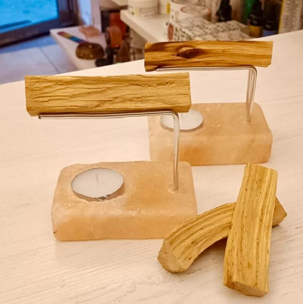 Brucia Palo Santo in Sale Himalayano BiciBio Bioprofumeria con Tea-Light per una Lunga durata ed una maggiore resa Aromaterapica.