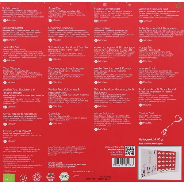 Ingredienti: Calendario dell’Avvento Rosso con Tè e Tisane Bio English Tea Shop