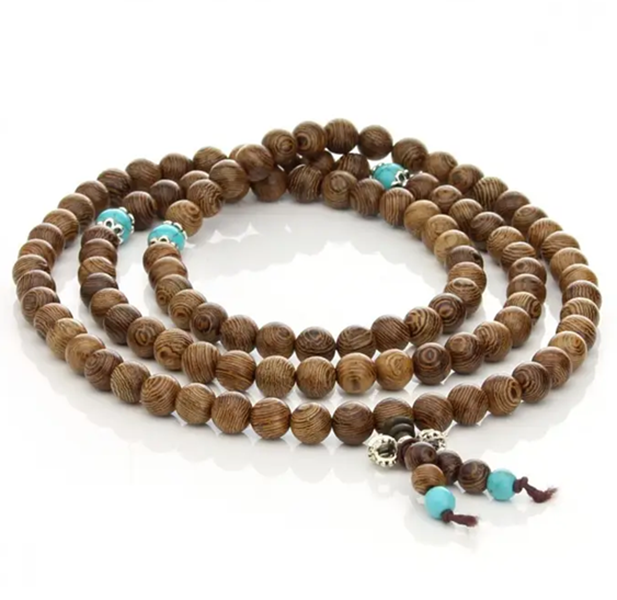 Molti scelgono di indossarlo anche come collana o bracciale, per beneficiare delle energie del legno e del turchese durante la giornata, trasformando un antico strumento di preghiera in un raffinato accessorio di benessere spirituale.