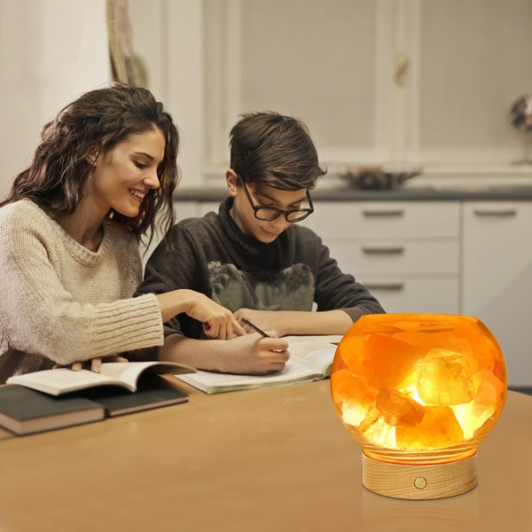 Questa lampada di sale a batteria è anche un elegante complemento d’arredo, perfetto per diversi stili: