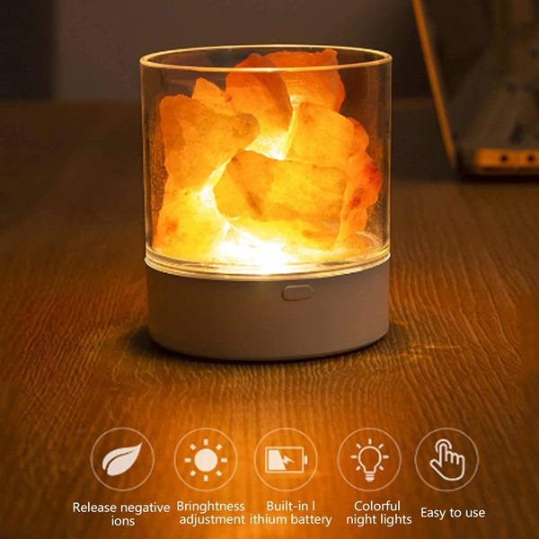La lampada di sale a batteria portatile è ideale per chi viaggia o desidera una luce naturale sempre con sé.
