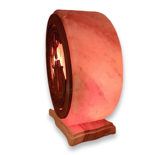 Realizzata in autentico sale rosa dell’Himalaya e impreziosita da un raffinato inserto in legno traforato al laser, questa lampada dal peso di circa 5 kg diffonde una luce calda e rilassante, creando un’atmosfera accogliente e armoniosa.