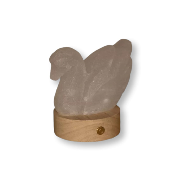 Questa lampada di sale himalayano a forma di cigno รจ perfetta per arredare con stile e dare un tocco distintivo alla tua casa o al tuo studio.