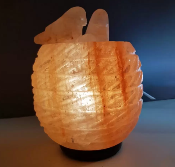 Lampada di sale rosa dellโHimalaya autentico scolpita a mano a forma di nido.