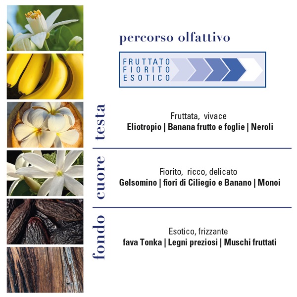 Note di testa: Banana, Eliotropio, Neroli