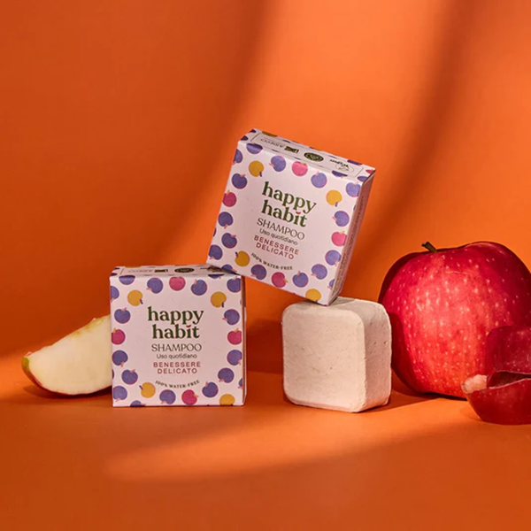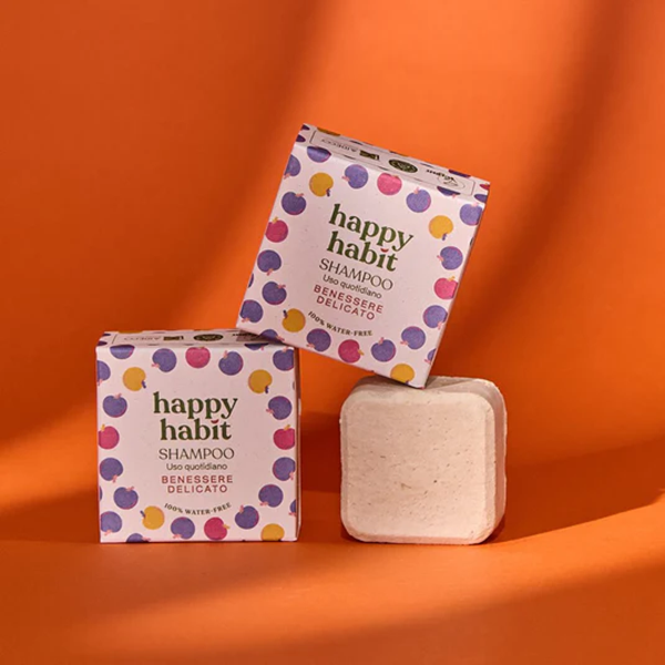 Ricorda, i prodotti solidi di Happy Habit sono formulati senza acqua e con ingredienti upcycled, rendendoli non solo efficaci ma anche rispettosi dell’ambiente.