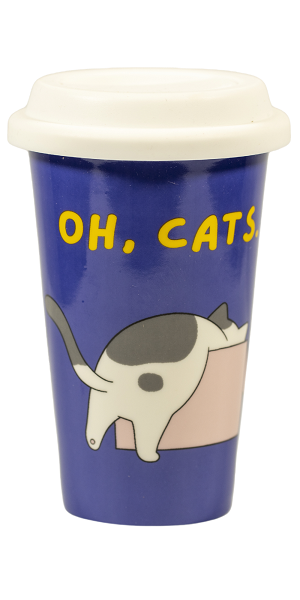 Tazza Americana In Ceramica Oh Cats IdeaForProject Ideale per Bevande Calde e Fredde Con Tappo a Chiusura Ermetica In Silicone