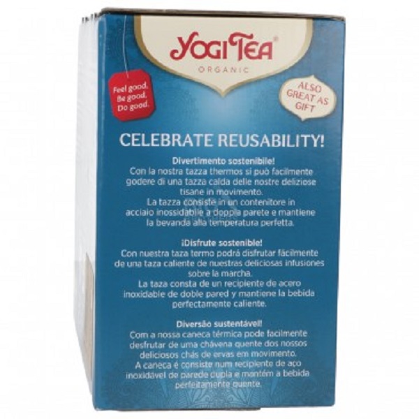 Questo elegante cofanetto è ideale come regalo. La tazza termica permette di portare con sé un infuso caldo e rigenerante ovunque ci si trovi. La tazza termica mantiene la temperatura, mentre l’iconico infuso Classic Yogi Tea, a base di cannella, cardamomo e zenzero, offre una bevanda ricca di sapore e benessere ayurvedico.